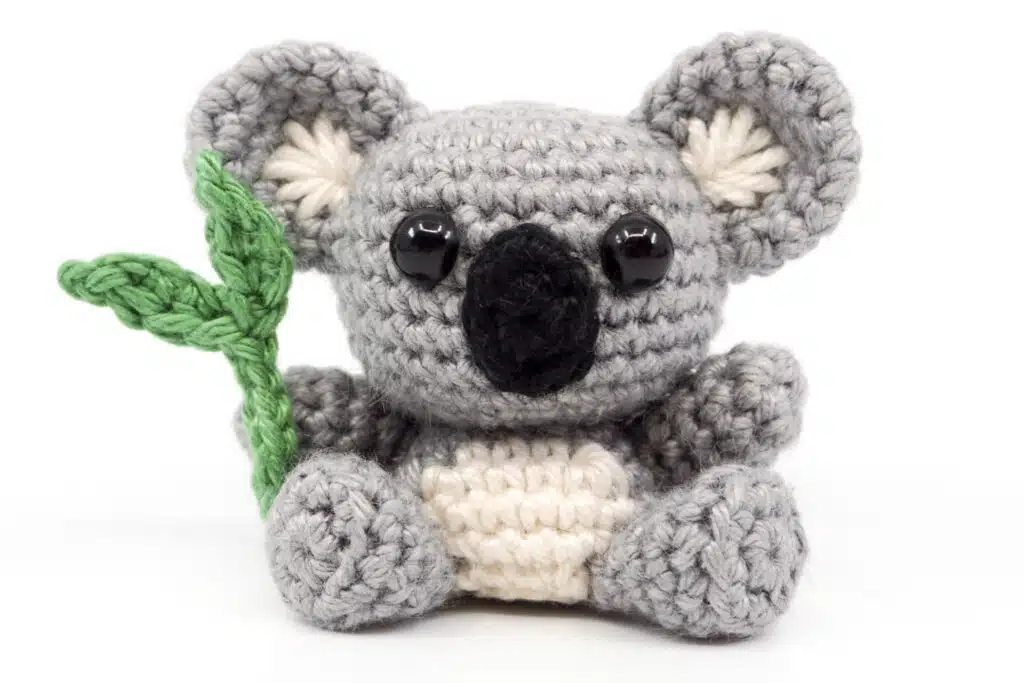 Damit Sie nicht extra nach Australien reisen müssen um einen Koala zu sehen, häkeln Sie sich doch einfach diesen kleinen Gefährten. Und damit dieser auch nicht hungern muss, gibt es einen Eukalyptus Zweig direkt dazu.