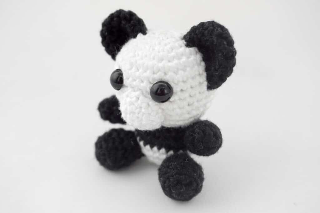 Den Panda häkeln Sie mit Luftmaschen, Kettmaschen, festen Maschen und halben Stäbchen in Spiralrunden und in Reihen und ist einfach nachzuhäkeln.